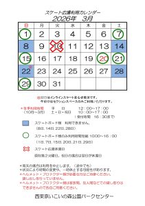 来年度からの指定管理者変更に伴い3月の営業はございません。 来年度の営業につきましては未定になります。恐れ入りますが次期指定管理者 からの情報をお待ちください。 |