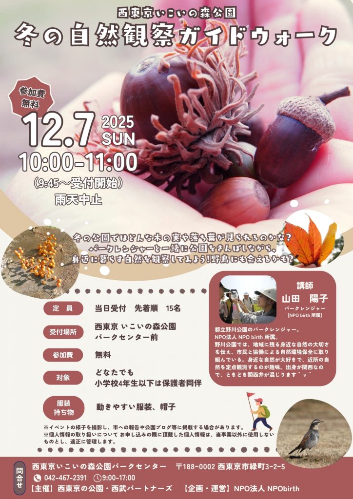 いこいの森公園で冬の自然ガイドウォークを開催いたします!!