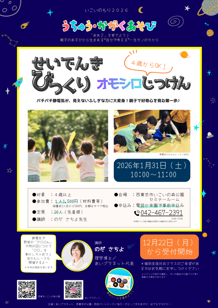 「うちゅう・かがくあそび」は、宇宙のおはなしや、やさしい科学実験をとおして大人も子どももあそびながら自然科学に親しむシリーズ。