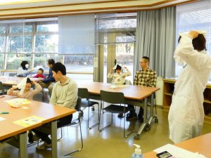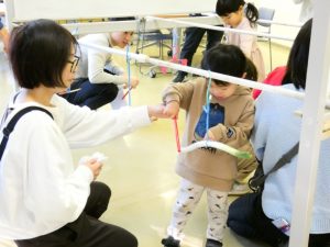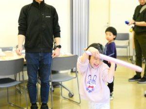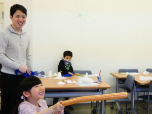 せいでんきの仕組みやおはなしを聞いたあとは、ロング風船を使ってあそびます。